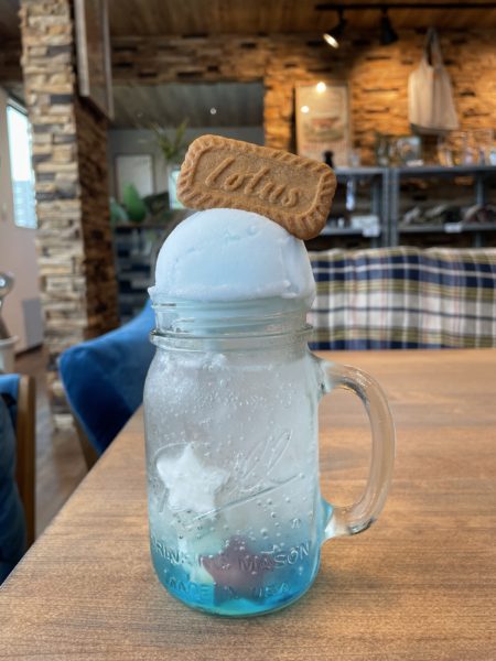 トッピングには、お菓子のラムネ入りラムネアイスを豪快に乗せております!