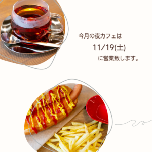 今月の夜カフェは『11/19(土)』です。