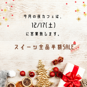 今月の夜カフェは、『12/17(土)』に営業致します。