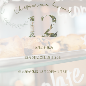 ☆12月のお休みと、年末年始休暇のお知らせ☆